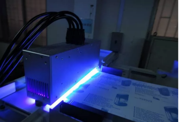 UV LED(Light-Emitting Diode)光源是紫外光源技术朝着更节能、更环保方向发展的产物,是一种能够发射极窄的光谱半宽,并能将电能转化为光能的半导体电子元件。利用光电转换 原理,通过在半导体基片上注人、掺杂杂质生长PN结而得到,发光机理缘其电致效应,电子和正电荷在移动过程中碰撞结合转化成光能。其辐射波峰单一,光线能 量集中在具有有效固化作用的一段紫外光谱段。由于光谱半宽相比传统UV光源窄许多,能量高度集中,低热能,辐照更均匀。使用UVLED光源能减少印刷资源 浪费,降低印刷成本,从而节省印刷企业生产时间,大幅度提高企业生产效率。